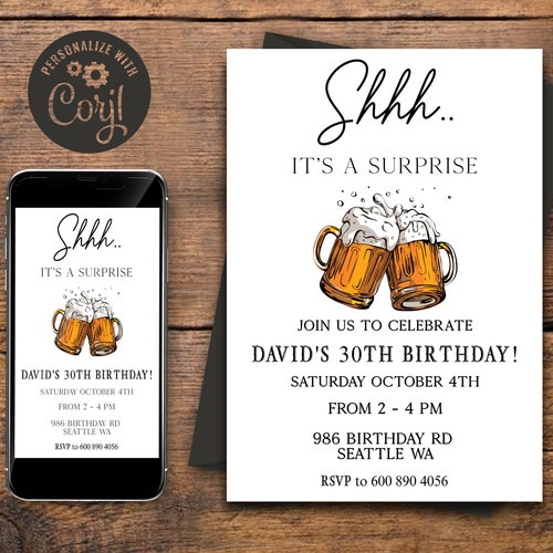 Editable Beer Surprise Birthday Party Invitation 30th 40th Etsy